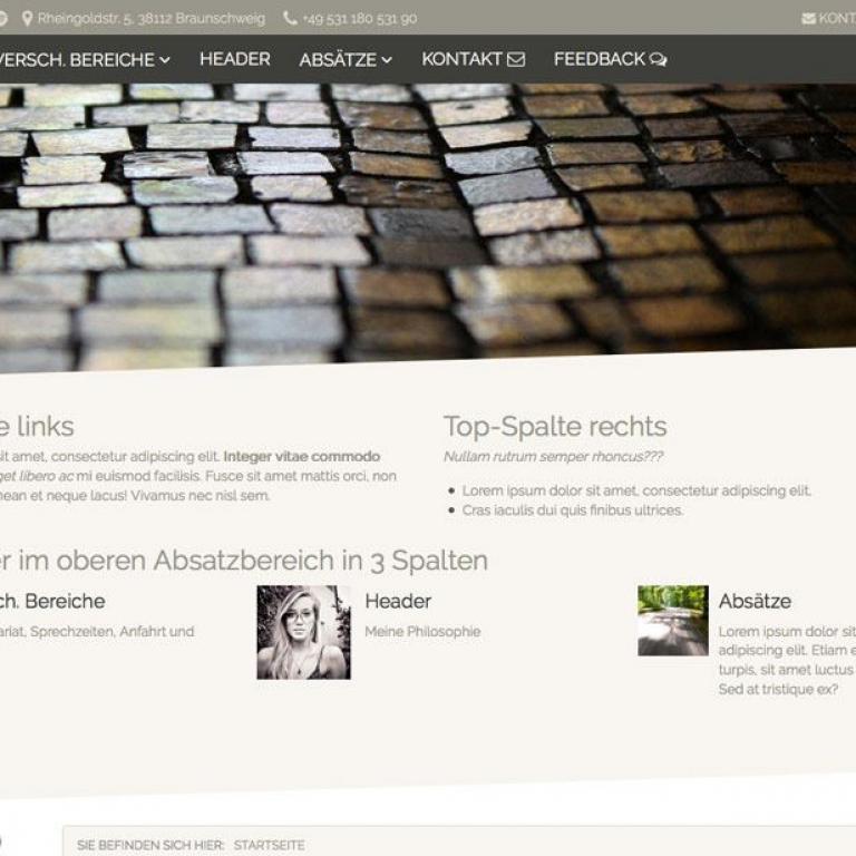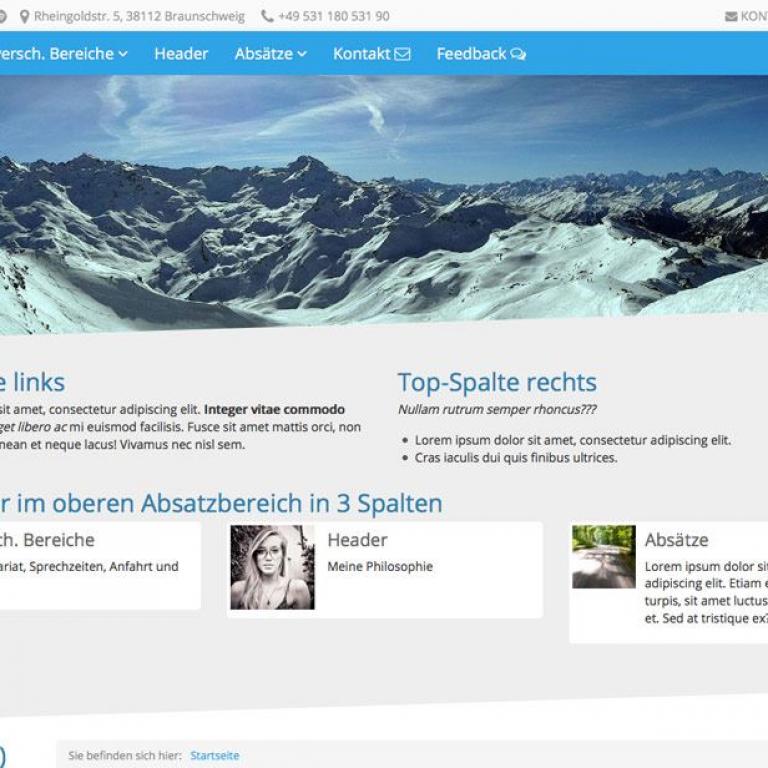 Das Layout eignet sich auf Grund der vielfältigen Menü-Einstellungen besonders für große Webseiten, aber auch für kleine Webpräsenzen ist es sehr gut geeignet.