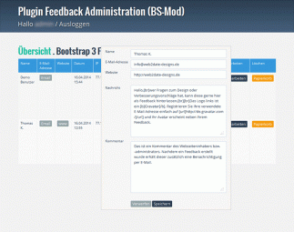 Das BS3-Feedbackformular benachrichtigt Sie per E-Mail, so kann der Kommentar Ihres Besuchers schnell freigeschaltet werden. Die E-Mail enthält einen Link zu der Seite, einen Link zur Administrationsseite der Feedbacks und natürlich auch die Nachricht. Als Absender ist der Name und die E-Mail-Adresse des Kommentierenden angegeben, so dass Sie auf Wunsch schnell auf den Kommentar anworten können.