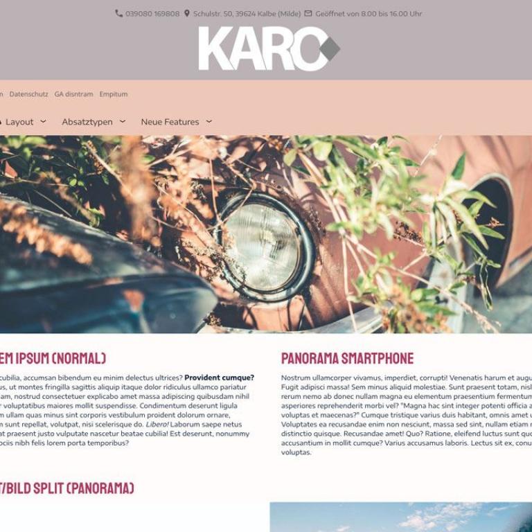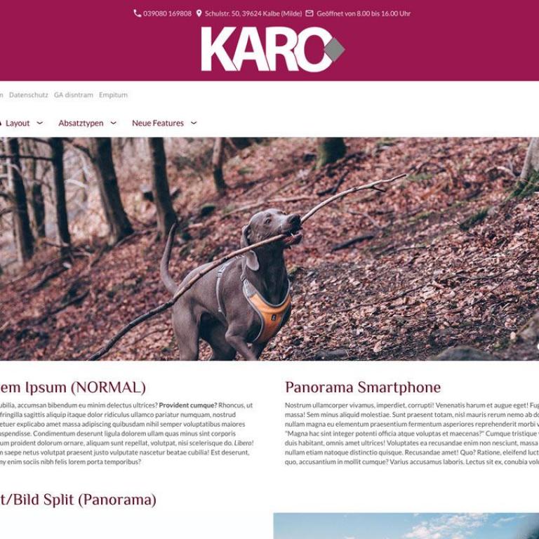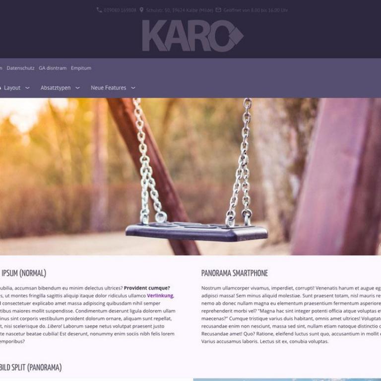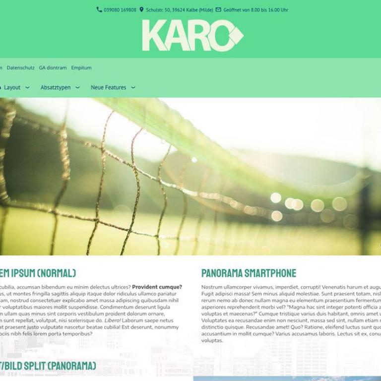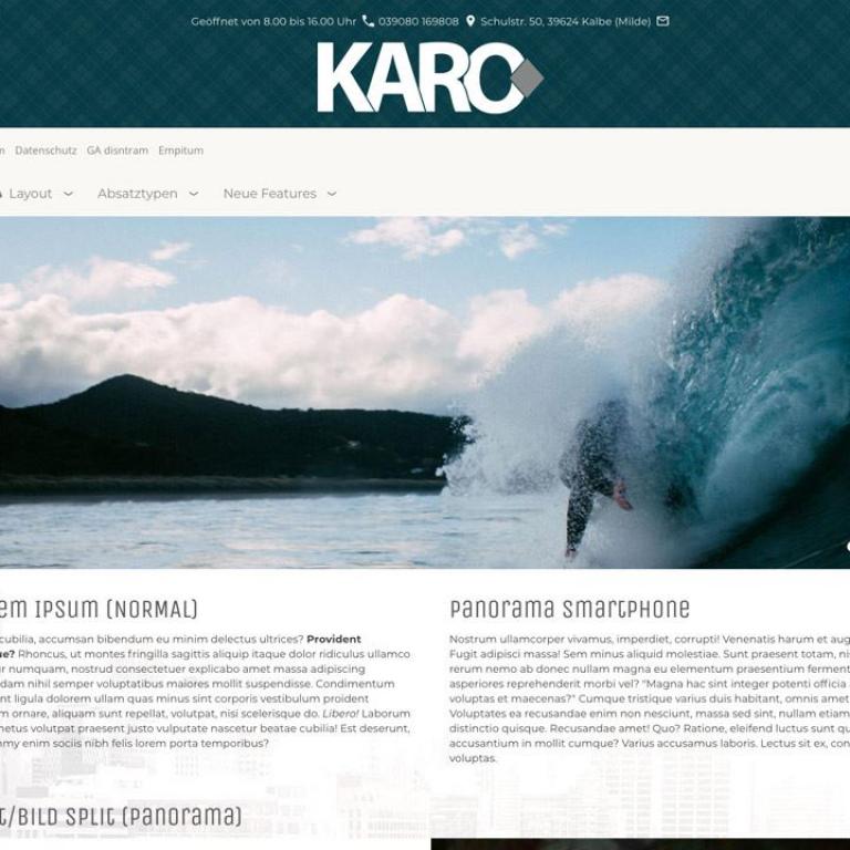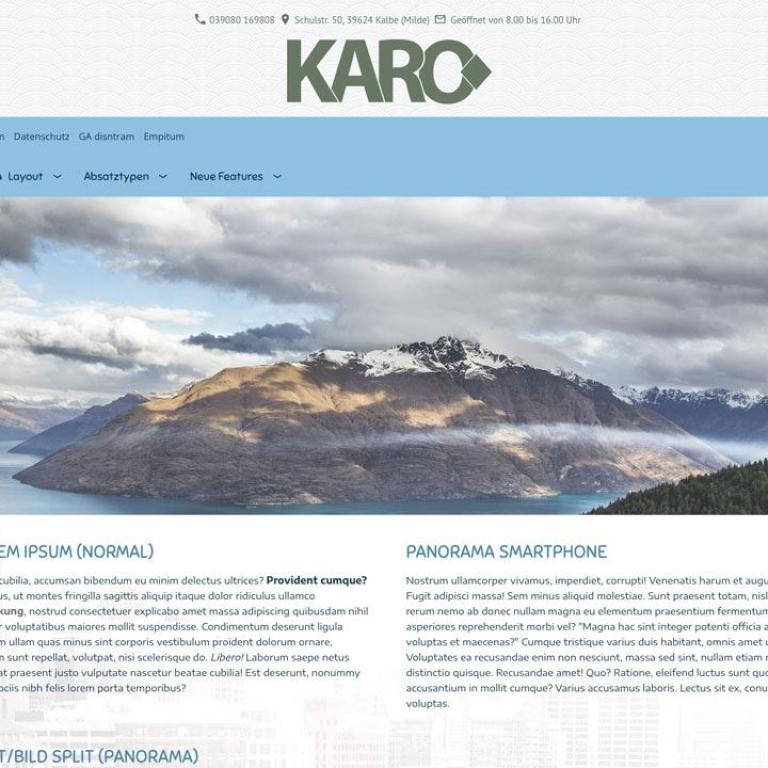 Hinweis: Der Funktionsumfang der Webmaster-Version ist mit der Einzelplatzvariante identisch. Eine ausführliche Beschreibung entnehmen Sie daher bitte der "KARO Flex Layout (responsiv) - Produktseite.