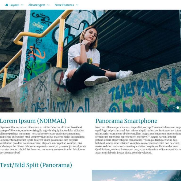 Hinzugefügt wurden außerdem eine Direktnavigation, Panorama-Absätze als Eyecatcher und weitere Einstellungen für die Navigation. So kann die Navigation nun auch per Herüberfahren mit der Maus geöffnet werden.