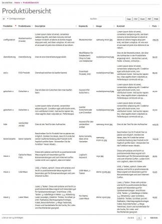 Die Suche durchsucht alle Zeilen und Spalten der Tabelle und aktualisiert die Tabelle während der Eingabe, so wird natürlich auch die Produktnummer berücksichtigt, was besonderes interessant wird wenn Ihr Shop besonders von Stammkunden besucht wird.