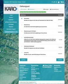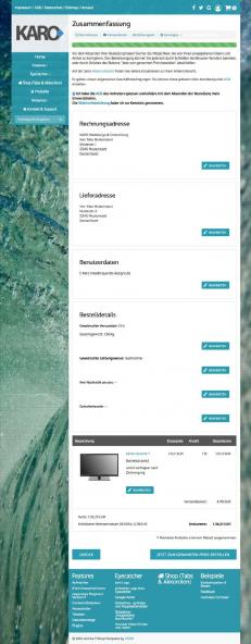 Außerdem ist das Template ist so angelegt, dass im Benutzerbereich der Inhalt immer über die volle Breite geht und keine Kontextspalte bzw. Sidebar angezeigt wird, zusätzlich wird während des Bestellprozesses ein Fortschrittbalken angezeigt.